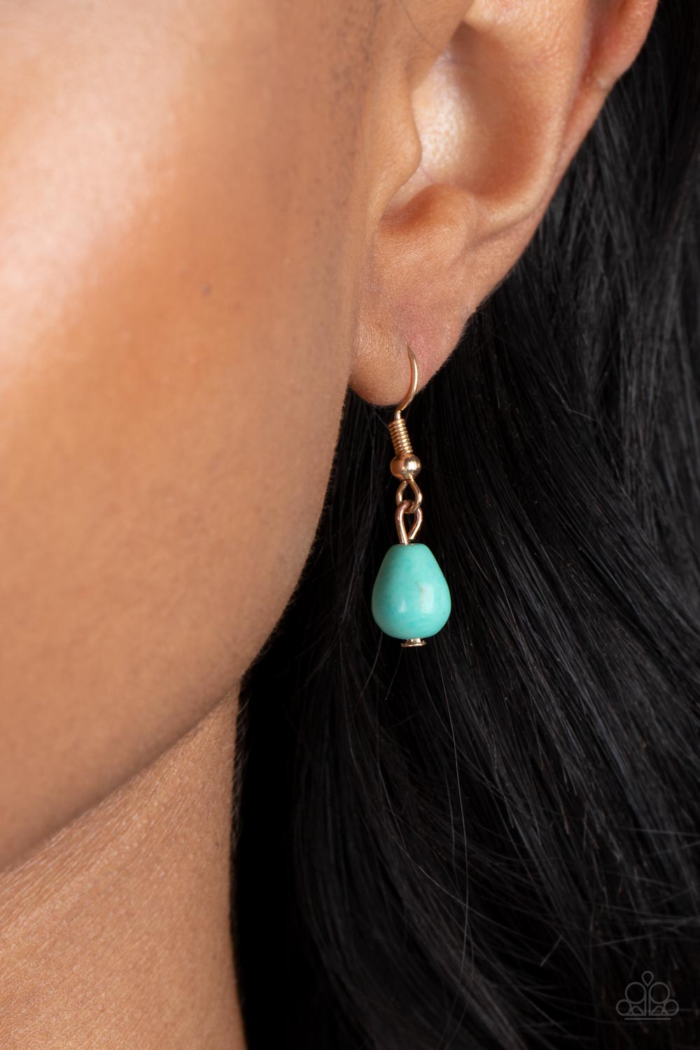 Swinging from a dainty gold chain, a hammered disc in the same hue is stamped with the words "be kind." A chiseled turquoise teardrop hangs from the bottom of the pendant adding a fashionably rustic feature. Features an adjustable clasp closure. As the stone elements in this piece are natural, some color variation is normal.